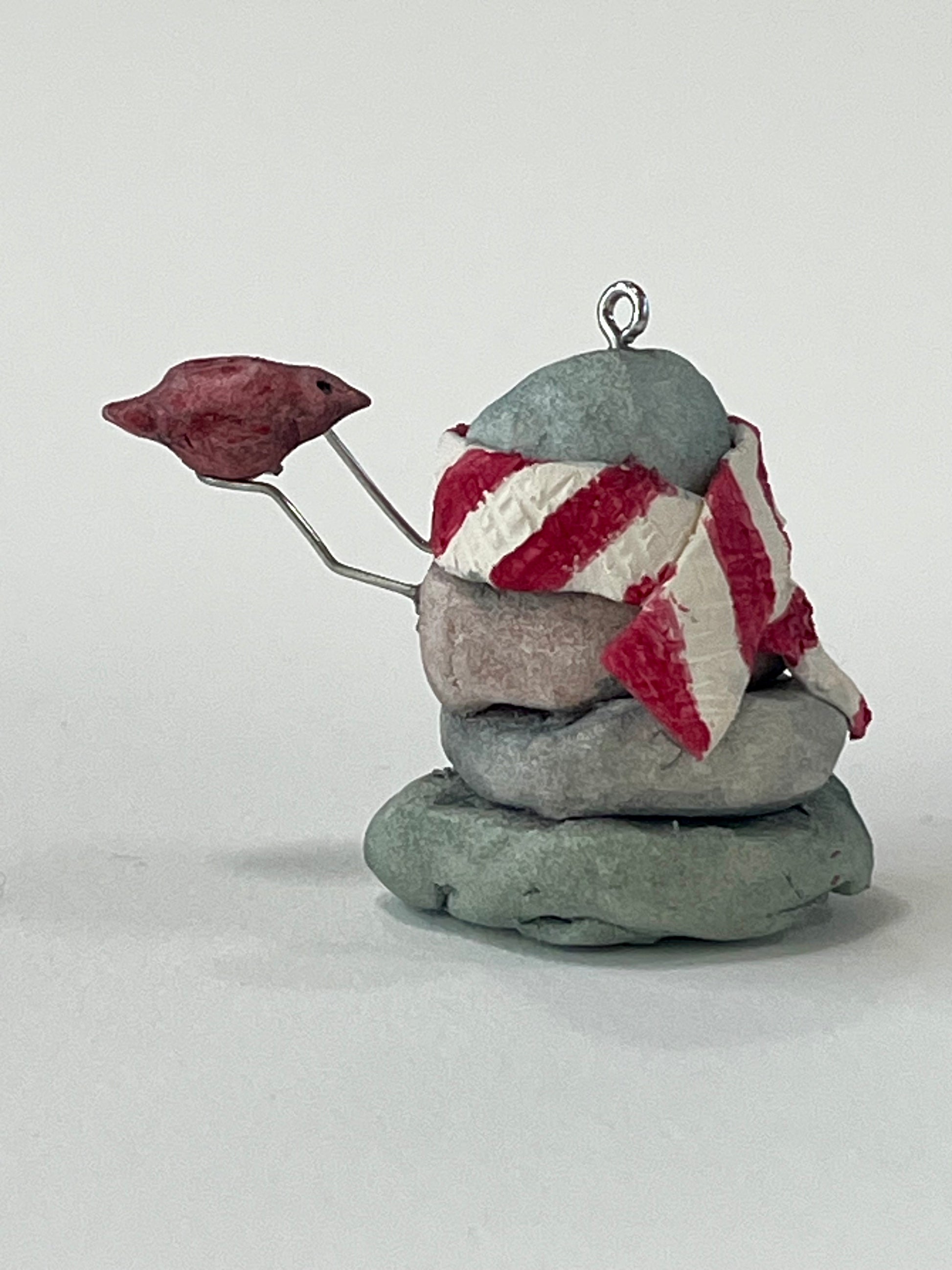 Hand sculpted and painted bisqueware ornament. Since this piece is hand sculpted and painted, it is one of a kind. The piece is sealed, but it is not recommended for outdoor use. Wire hanging hook included.