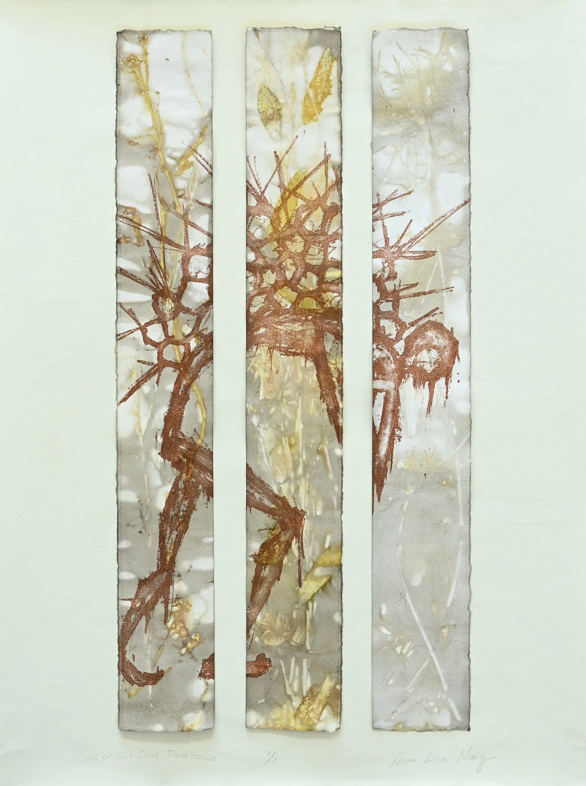 Lithograph printed on strips of eco printed BFK and mounted on an archival paper backing. No similar editions printed. 25x 19 inches. Not framed.