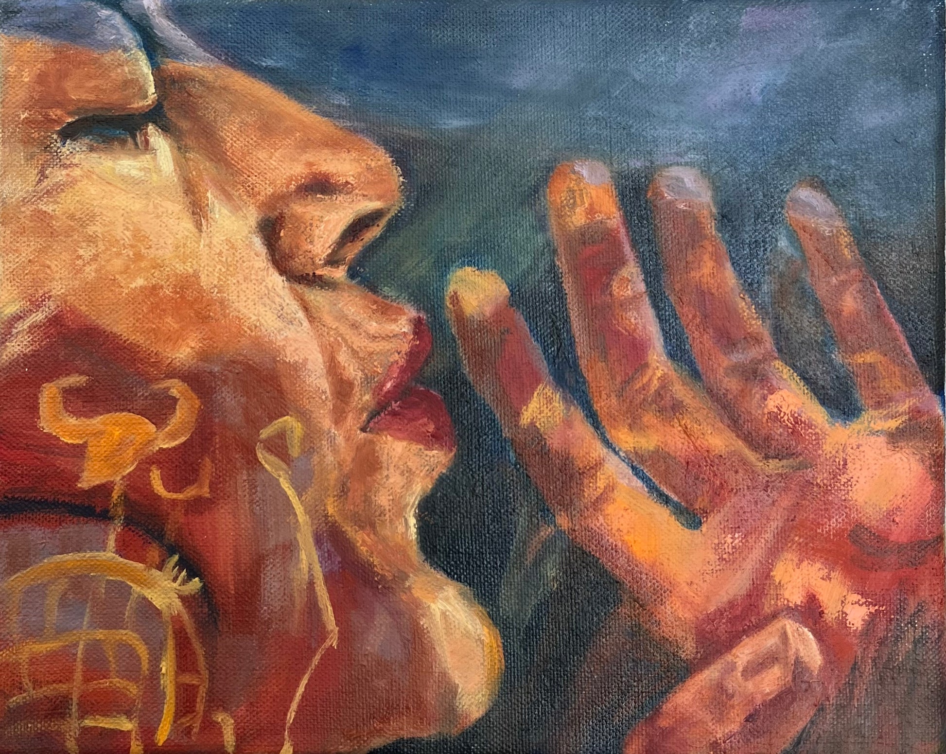 Oil on stretched canvas, 2023. Measures 8 inches by 10 inches. Framed.
