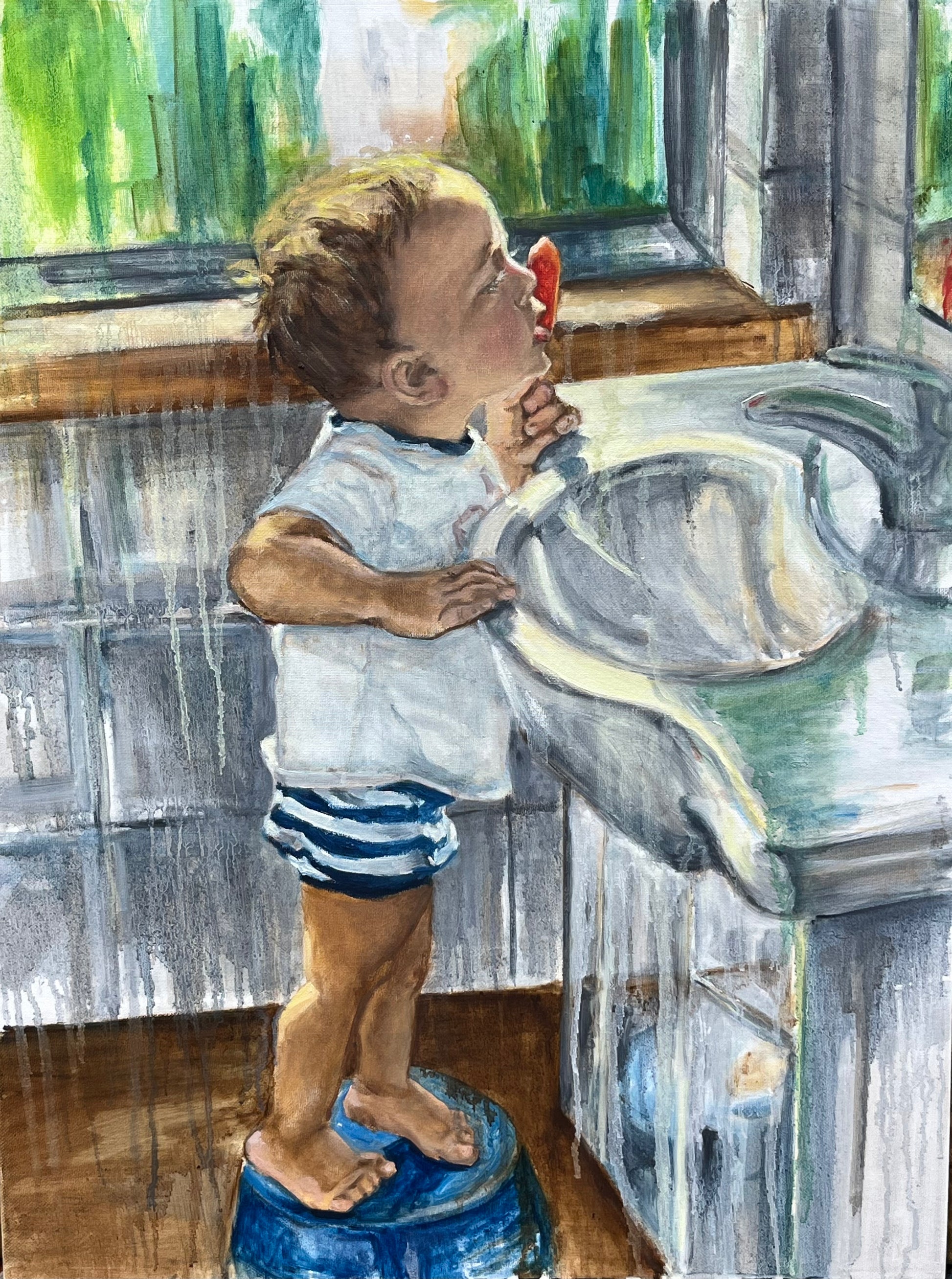 Oil on canvas panel. Measures 24x18 inches. Not framed.